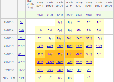 したがって、中古販売価格も全体的に安く抑えられる。