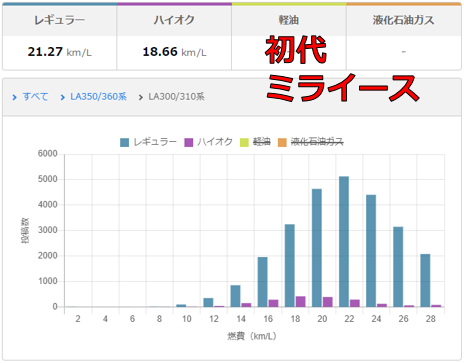 ミライースが 21.27km/L