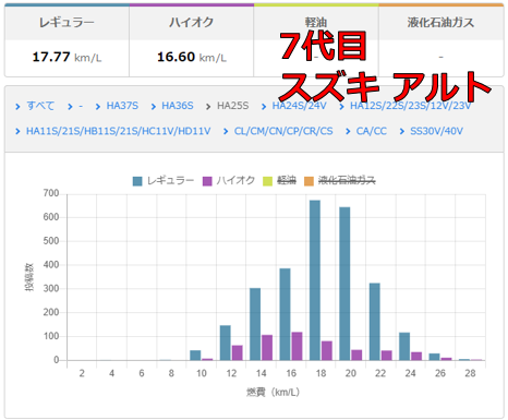 アルトが 17.77km/L