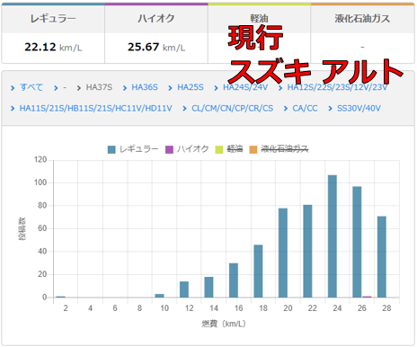 そこで、みんカラの燃費記録で比較しようと思う。