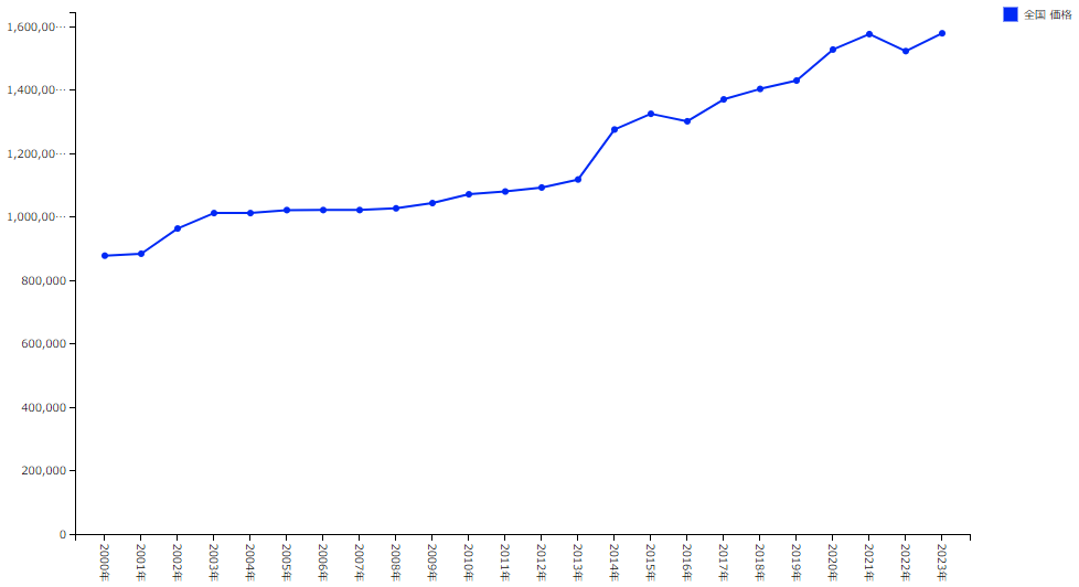 軽自動車の新車価格は下グラフの通り年々上がり続けており、初代ミライースが発売された2011年の平均価格は108万1,260円である。