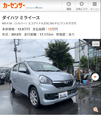 カーセンサーには他にも10万円くらいで買える車はたくさんあるが、年式が古かったり、その車種の平均価格より大幅に安い(その個体に問題がありそう)だったりすることがほどんどである。