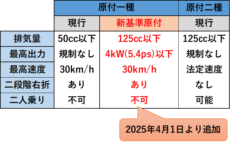 2025年4月1日から新たに導入される新基準原付。